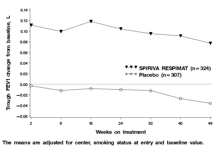 Spiriva respimat tiotropium bromide inhalation spray is an anticholinergic drug used for the long term once daily maintenance treatment of bronchospasm associated with chronic obstructive pulmonary disease including chronic bronchitis and emphysema.